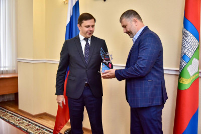 Вручение губернатором знака отличия как участнику Первого потока в региональном проекте «Оптимизация производственных систем предприятий на основа внедрения системы наставничества и инструментов бережливого производства, в администрации Орловской области